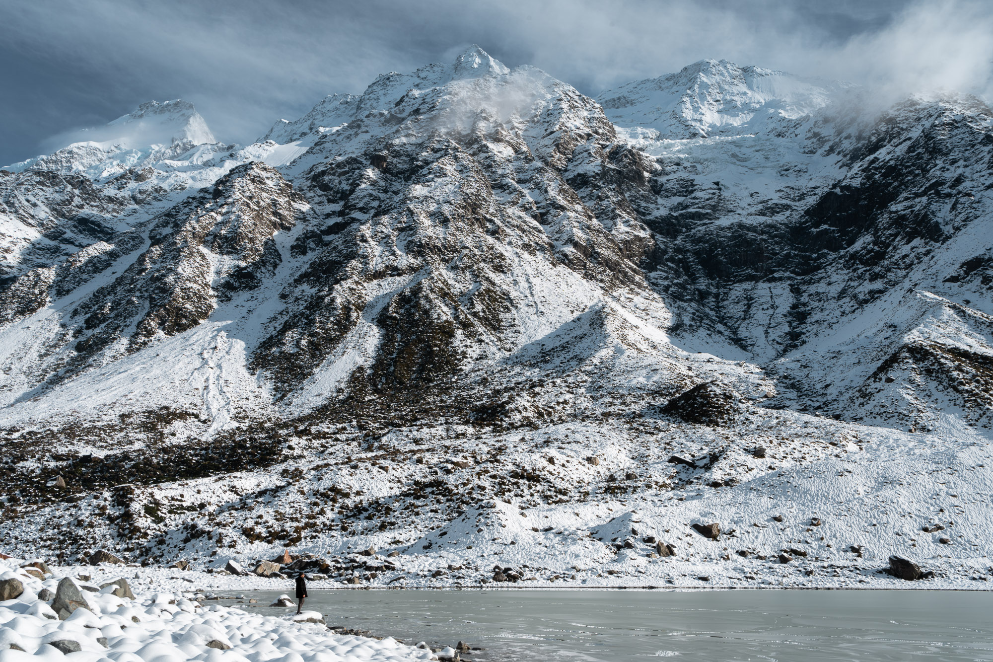 Another early start to catch the sunrise; there’s simply nothing quite like the sunrise colours on the mountains. Luckily for us, the roads that had been closed over the weekend due to heavy snowfall have now been cleared, allowing us to embark on the hike we had originally planned. Hooker Valley – if there’s only one hike you do in Mount Cook National Park, make it this one. While Sealy Tarns, famously dubbed as the “Stairway to heaven” with its daunting 2,200 steps, and the Tasman Lake track were also on our list, we’ll have to save those for another visit.